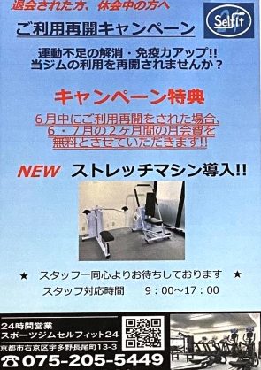 6月中にご利用再開をされた場合、キャンペーン特典として、